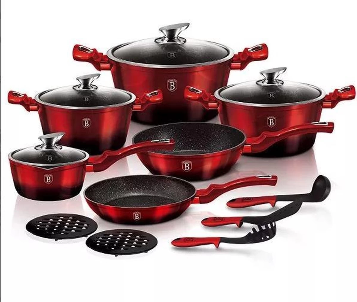 6-delige Balck Burgundy Pannen Set Bordeaux Rood Met Accessoires Ook Voor Inductie