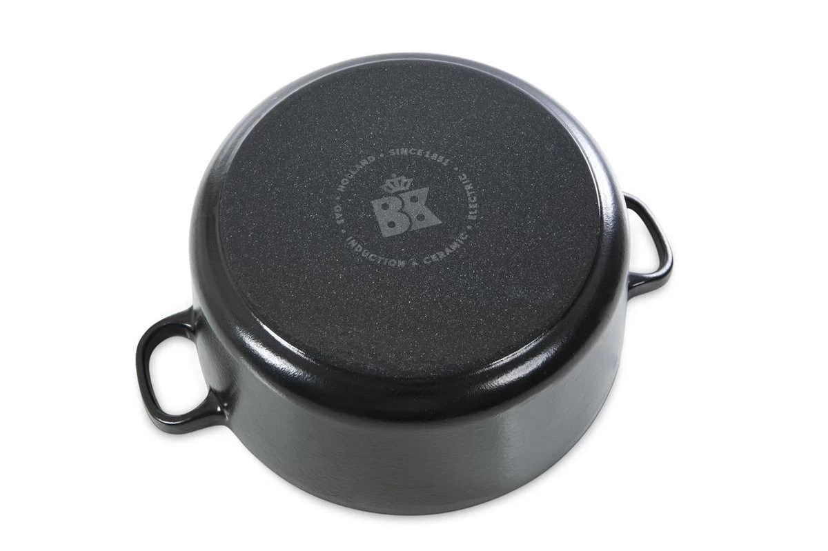 De traditionele BK Bourgogne Braadpan heeft een wit geëmailleerde gladde binnenkant. Door de druipringen in de deksel, wordt het kookvocht gelijkmatig verdeeld. Hiermee voorkom je dat je gerecht droog wordt. Hiermee is de BK Bourgogne functioneel en een echte eye-catcher in de keuken en op tafel.