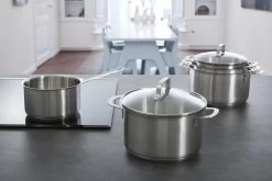 Deze pannen zijn gemaakt van hoogwaardig edelstaal en hebben een ingekapselde sandwichbodem. Zo warmen ze sneller op en wordt de warmte perfect en gelijkmatig verdeeld. De Flow Cool serie is op elke warmtebron te gebruiken (incl. inductie) en kunnen in de oven. De BK Flow Cool maakt een maatbeker in de keuken overbodig. De binnenzijde van de pannen heeft een duidelijke maatverdeling, waardoor je nauwkeurig de hoeveelheden kunt aflezen. Na gebruik kunnen de pannen gereinigd worden in de vaatwasser. Daarnaast zijn ze goed stapelbaar; zo bespaar je ruimte in de keukenkast.