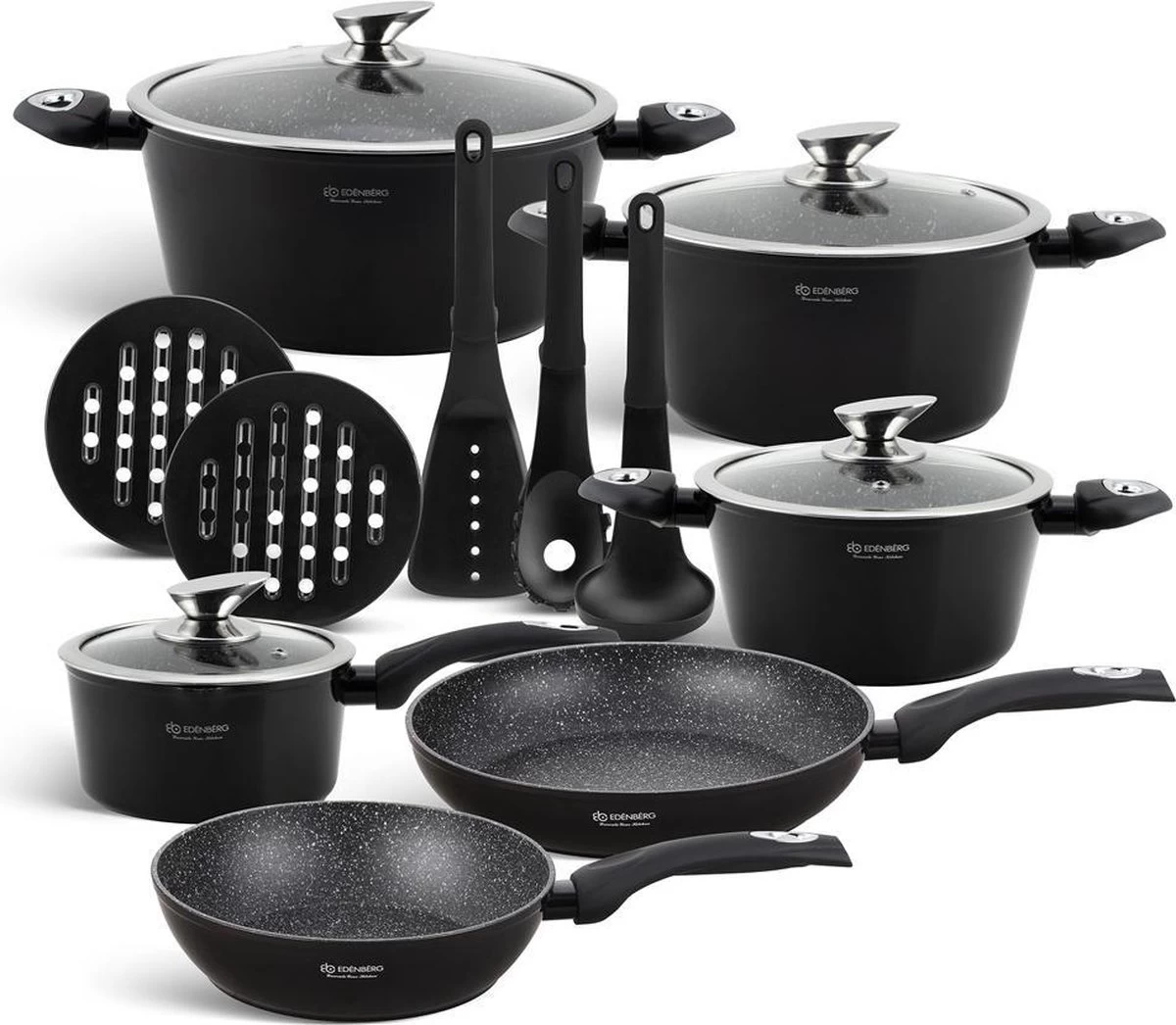 Edënbërg Black Line – 15-delige Luxe Pannenset Van Gesmeed Aluminium