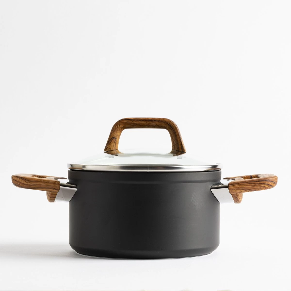 Gero Mark Kookpannenset – 4-delig – Zwart – Houtlook Grepen – Inductie – PFAS-vrij