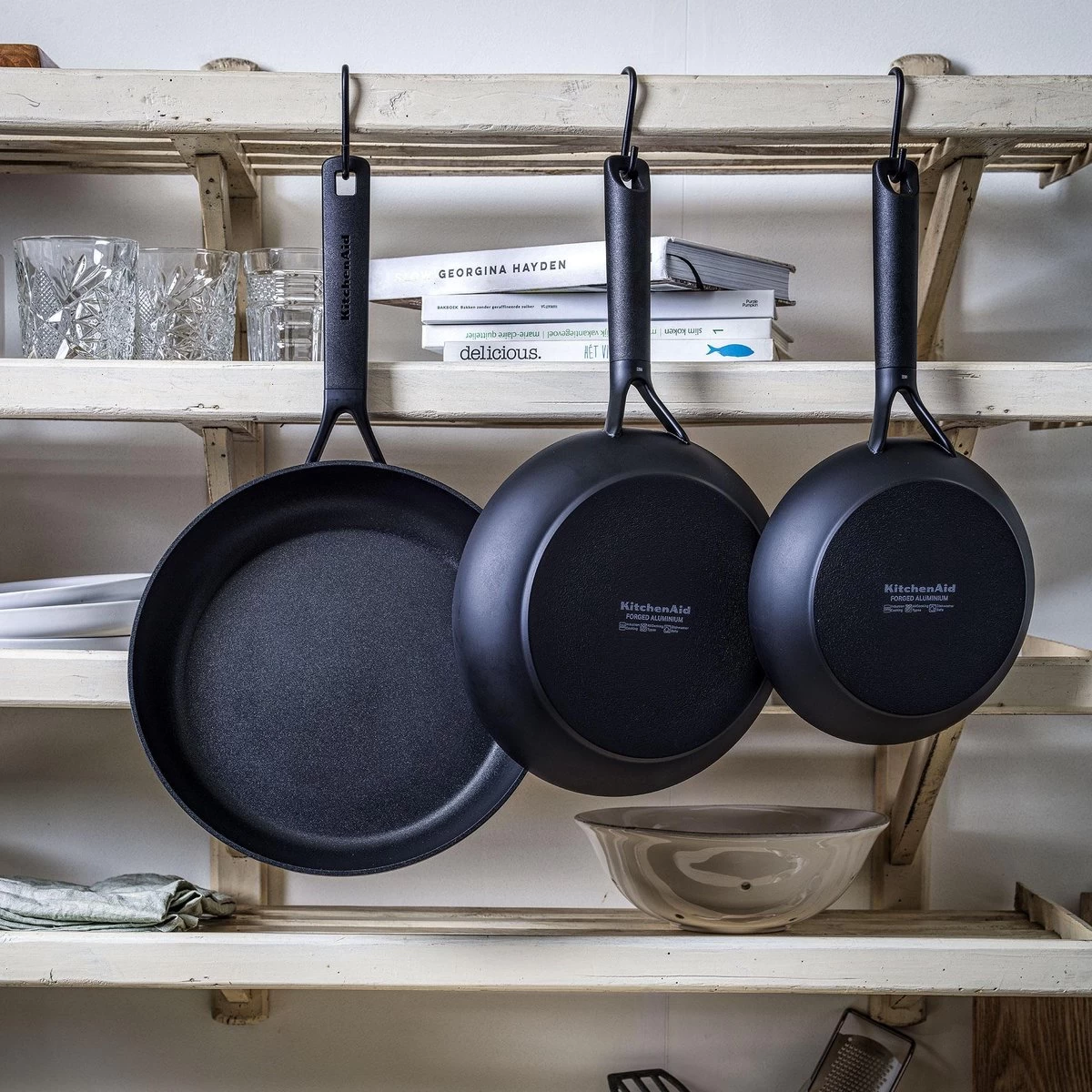 Kookfanaten die een tijdloze uitstraling verkiezen, zullen dol zijn op de Classic Forged Aluminium-collectie van KitchenAid. Het strakke, zwarte design en de zuivere lijnen zijn subtiel en toch bijzonder. Een mooie aanvulling voor elke keuken!