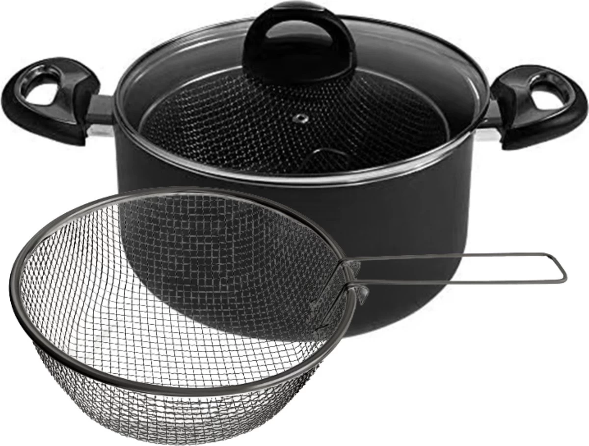 Deze oldtime Platinum frituurpan is ideaal om snel voor je familie, vrienden of collega’s de lekkerste friet, snacks of andere hapjes op tafel te zetten. Vul die pan met frituurolie, gooi de snacks in het mandje, even wachten en serveren! De frituurpan heeft een diameter van 24 cm en is geschikt voor de meeste warmtebronnen.
