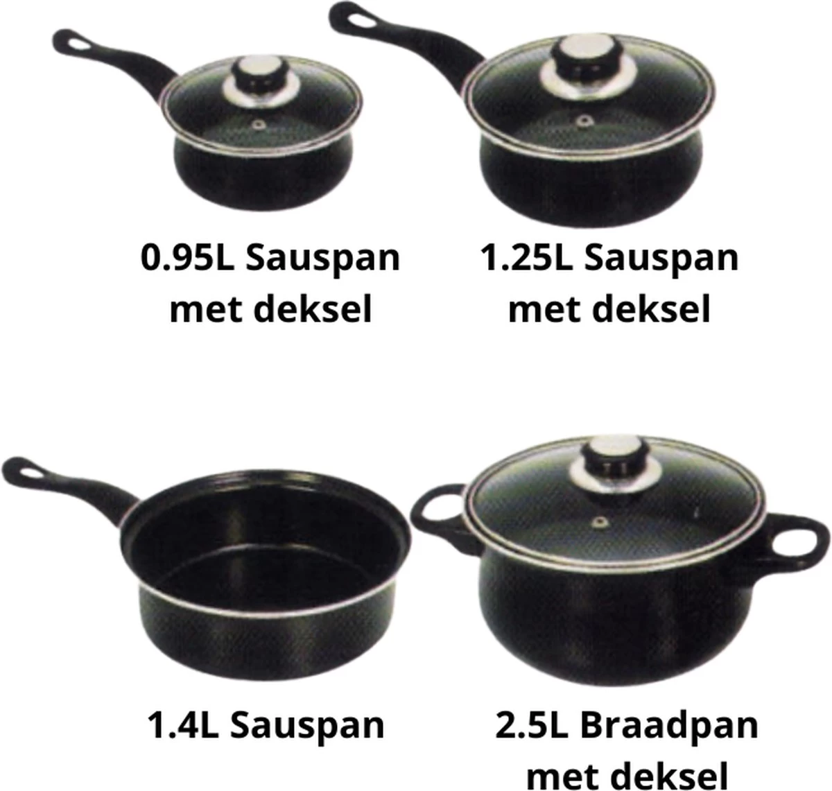 Prima Pannenset 7 Delig – Kleine Pannen – Zwart – Antiaanbaklaag – Kookset – Met Deksel – Kookpannen – Sauspan – Cadeau Voor Man En Vrouw