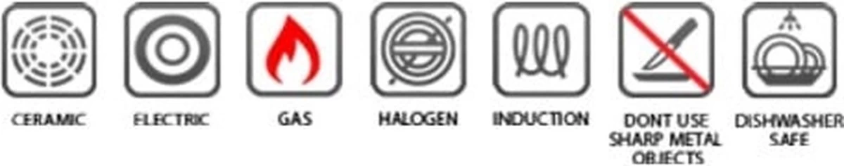 Wij adviseren om de pan met de hand af te wassen voor langdurig gebruik en handvat van deze pan niet precies boven het hoge vuur houden, hierdoor kan het handvat alsnog heet worden en kan het handvat verbranden. LET OP !!! GEEN SCHERPE VOORWERPEN (zoals fork, mes, ijzer spatels) GEBRUIKEN.