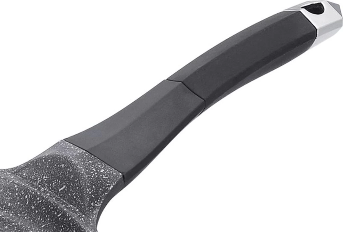 Eten bereiden in een marmeren coating anti aanbaklaag pan is heel erg eenvoudig. Eten bakt niet aan en tevens zijn deze pannen gemakkelijk met de hand schoon te maken. Bij de marmercoating pannen kunt u iets bakken zonder of slechts heel weinig vet te gebruiken, waardoor koken meteen een stuk gezonder is.