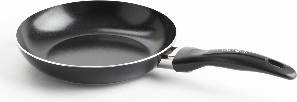 De PFAS-vrije VitaVerde Expert Koekenpannenset – 24 en 28 cm – Zwart is ideaal voor de keuken van elke dag. De pannen zijn gemaakt van kwalitatief aluminium en hebben een keramische antikleeflaag (PFAS-vrij). Die helpt je bakken zonder plakken met minder vetstof! De pannen werken op alle warmtebronnen.
